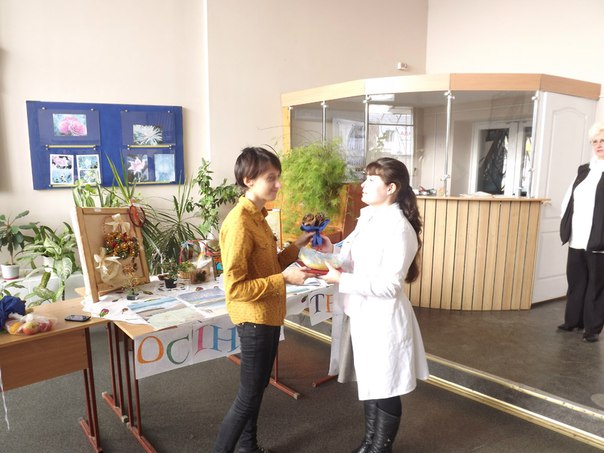 На фото:  нагородження Юлії Волощук за перше місце у виставці "Осінні барви".