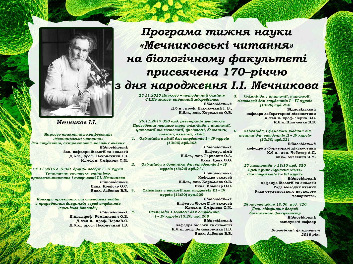 1 вересня дружня родина біологічного факультету розширилася - до нас приєдналися безперечно оригінальні, молоді та багатообіцяючі студенти. Найближчі чотири роки їх по життю будуть вести викладачі природничих наук, а першокурсники, у свою чергу, відкриватимуть для себе світ Науки. Сподіваємося, що освоєння діапазону біологічних дисциплін буде легким та продуктивним. Бажаємо вам успіхів та завзяття, біологи-першорічки!