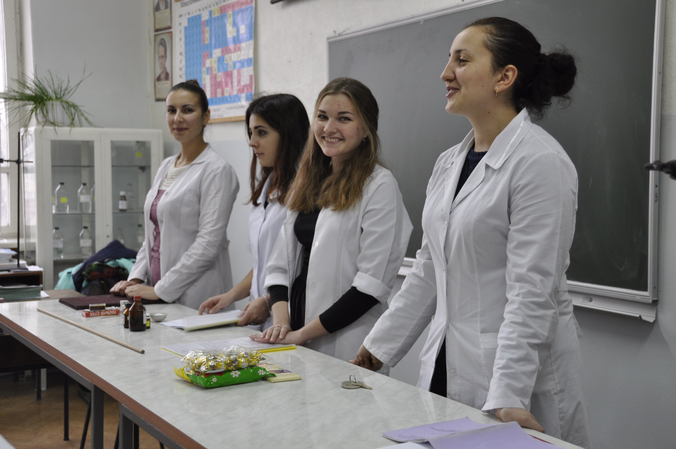 Останній день тижня науки "Мечніковські читання" відзначився проведенням Дня відкритих дверей та батьківських зборів для батьків першокурсників. Послухати вступне слово від декана факультету Чеботар Лариси Дмитрівни прийшли зацікавлені абітурієнти зі шкіл Миколаївщини, у тому числі учні наших випускників. Після розповіді про життя та роботу біологічного факультету і перегляду розважально-змістовних відео від студентського телеканалу "Anima_TV", викладачі та магістри факультету влаштували вчителям та учням екскурсію по навчальним аудиторіям та науково-дослідним лабораторіям корпусу. Розповіді про роботу та цікаві досліди з зоології, ботаніки, фізіології людини та тварин, фізіології рослин та хімії, сподіваємося, зацікавили абітурієнтів. Чекаємо їх у нашій дружній родині біологіного факультету.