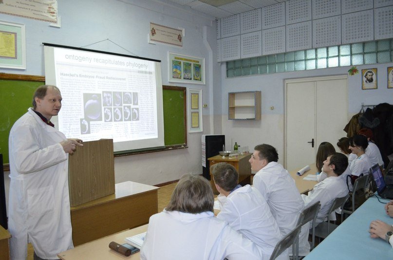 В кінці заходу магістри та активні студенти біологічного факультету представили сценку з педагогічної роботи Менделєєва.